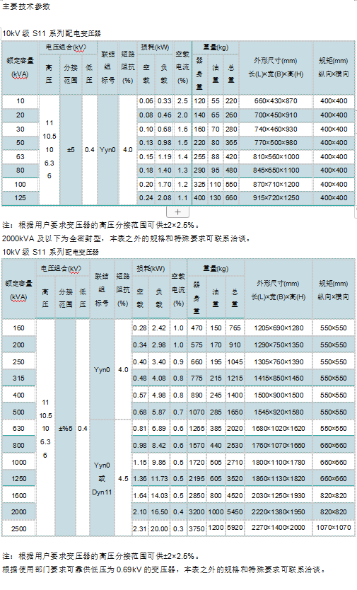 油浸式變壓器主要參數(shù)